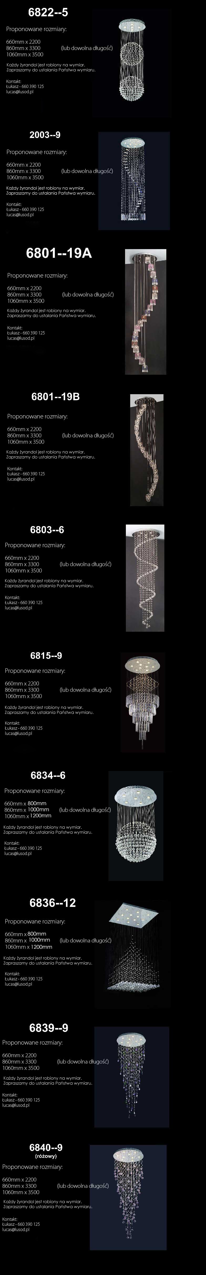 WYKAZ MODELI – LAMPY DŁUGIE NOWOCZESNE NOWOCZESNE II